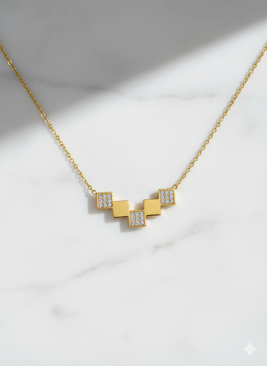 Le collier Midnight Solitaire incarne la pureté et l’élégance intemporelle. Sa chaîne fine en acier inoxydable met en valeur un pendentif solitaire scintillant, symbole de féminité et de confiance.