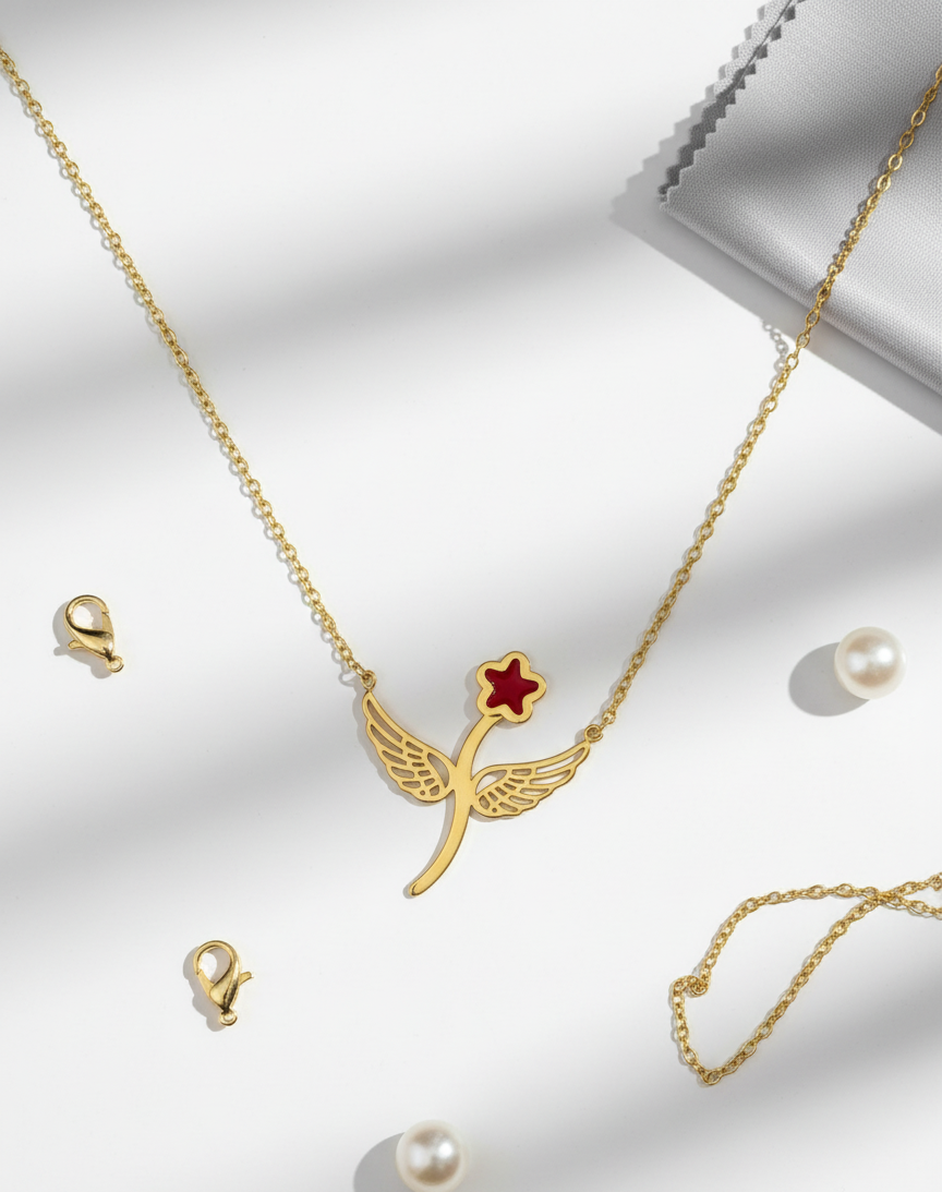 Collier femme “Rosée Matinale” en acier inoxydable – romantique, durable et raffiné, signé Flora Almas.