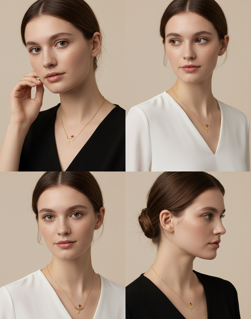 Délicat et romantique, Rosée Matinale capture la fraîcheur d’un matin paisible. Son pendentif finement poli reflète la lumière avec douceur.